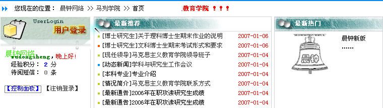 晨钟网站马克思主义教育学院已经更新,请各位从办公室汝国梁老师处获取账号和密码。
