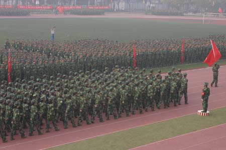南开新生练兵场 马列学子英姿爽(图)
