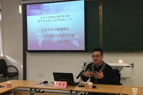 12月17日上午,我院国外马克思主义研究学科组邀请黑龙江省社会科学界联合会副主席、《学术交流》和《知与行》总编辑王宏宇教授,以“编辑眼光与论文写作:从马克思主义研究谈起”为主题做报告。丁军教授以及陈弘、孙寿涛、余一凡、孟锐锋、李玉萍等老师以及我院40余学生聆听了本次讲座,并进行了研讨。
