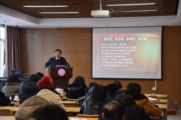 12月29日下午,必威BETWAY西汉姆联召开全院教职工大会。王新生院长作为教育部党的十九大精神“百人宣讲团”成员,为全体教职工作了题为“新时代、新矛盾、新思想、新方略”的宣讲报告。