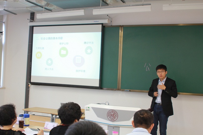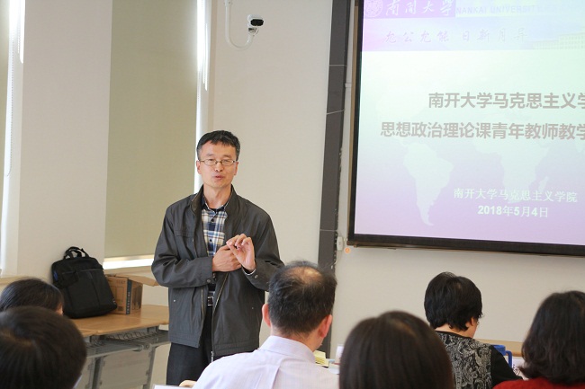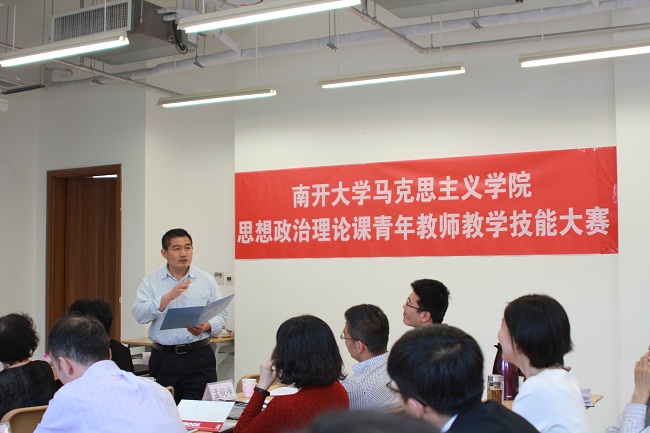 根据《关于推进新时代天津高校思想政治工作改革攻坚的实施意见》工作部署及市教委的有关要求,5月4日,必威BETWAY西汉姆联举办2018年思想政治理论课青年教师教学技能大赛。学院青年教师常宴会、丁晔、刘明明、马梦菲、孙海东、王元、于丹参加大赛,学院教授丁军、杨谦、徐曼、张健,学院副教授高辉、盛林、孟锐峰,及学院工会主席姚静、周恩来政府管理学院学生王政浩担当大赛评委,武东生教授及学院部分师生观看了大赛。学院副院长孙寿涛教授主持大赛。