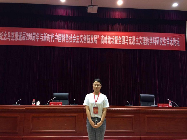 我院硕士研究生尚娜娜受邀参加此次大会,并在“习近平新时代中国特色社会主义思想研究”分论坛中就“习近平坚持以人民为中心的发展思想”做交流发言,获得专家、学者一致好评。