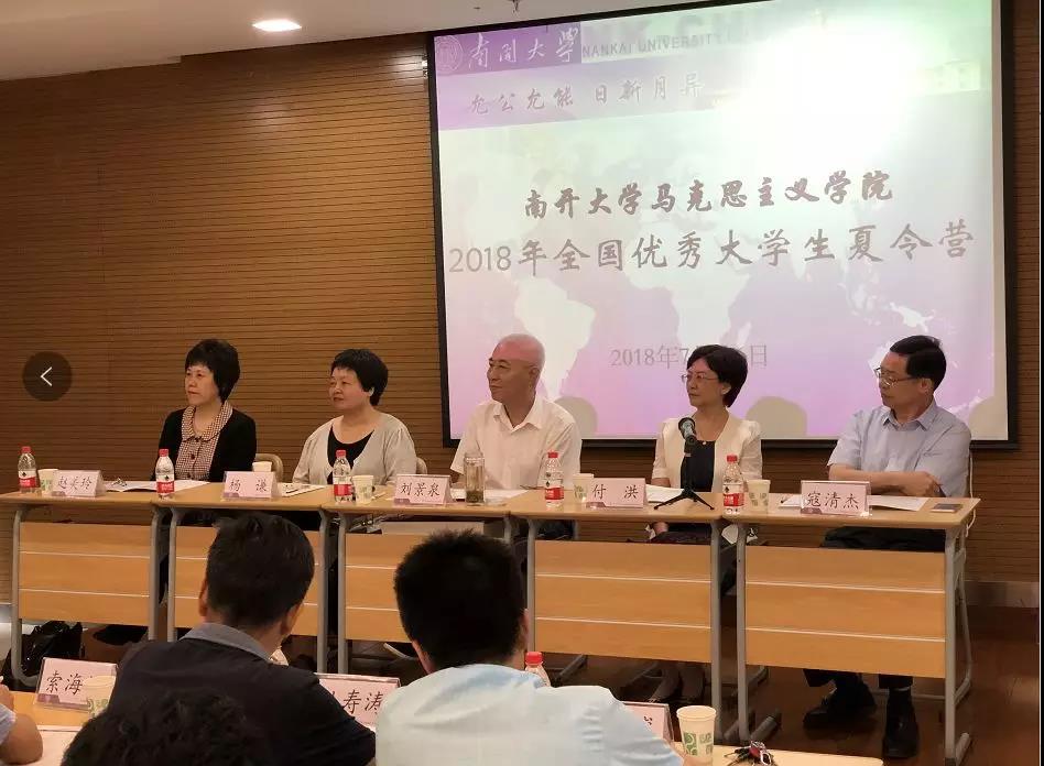 首先,付洪书记致辞。她对参加本次夏令营的同学表达了热烈的欢迎,对出席开营式的老师和为筹备活动付出努力的工作人员表示衷心的感谢。并就学院建设历史、学科发展状况和未来发展新机遇,以及本次夏令营的开展背景、筹备过程、活动形式作了简要介绍。此外,她殷殷嘱托远道而来的莘莘学子,希望同学们珍惜学习交流机会,在感受南开传统、南开文化、南开品格、南开精神的过程中,坚定加入南开马院的决心;在中国特色社会主义发展进入新时代、马克思主义学科大发展的进程中,抓住机遇,勇担重责,为开辟21世纪马克思主义发展新境界不懈努力!