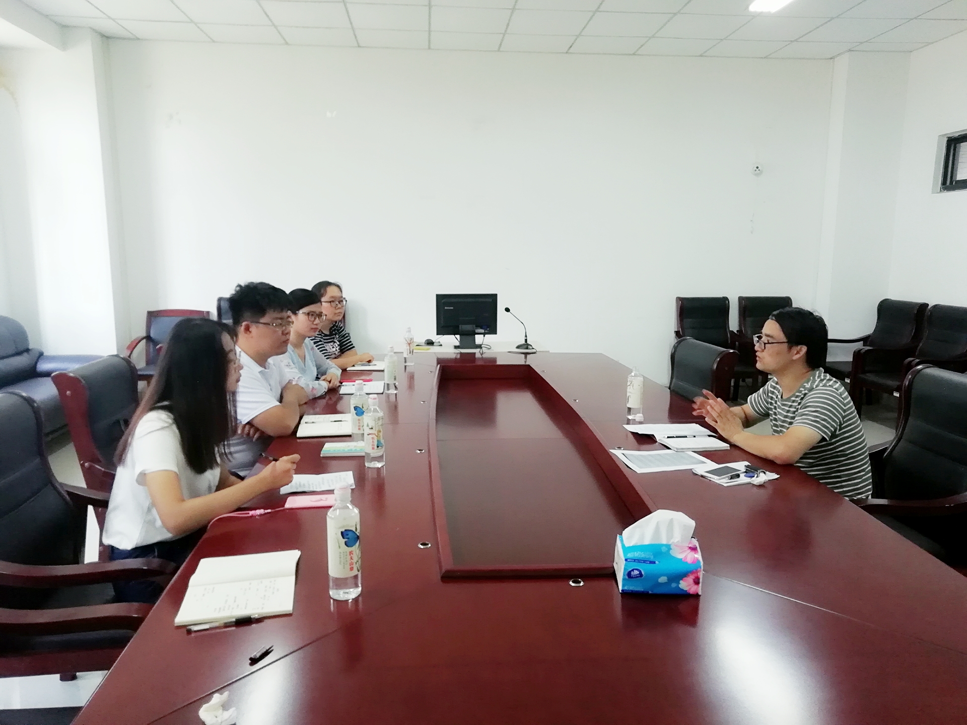 7月24日,马院师生一行来到安徽大学必威BETWAY西汉姆联进行调研交流。安大马院党委秘书、研究生辅导员储汉民为南开师生介绍了学院在学生培养、学生党支部建设等方面的经验和做法。安大马院在研究生培养过程中注重专业教师的指导,研究生理论宣讲团在专业教师的指导和跟进下,通过组织学习、集中备课、院内试讲、校内宣讲、实习单位宣讲等环节保证宣讲的质量。充分发挥学生党员的先锋模范作用,党员带头承担理论宣讲的任务,切实提高理论素养和实际教学能力。座谈交流后,马院师生一行还参观了安大校史展览和新校区校园。