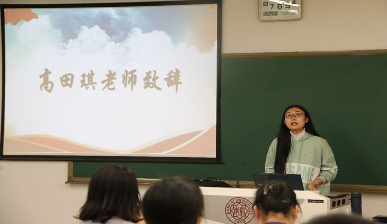 嘹亮的团歌声里,开学典礼拉开帷幕。首先,高田琪给全体学员致辞。她说:“团校是培训团员、让团员学习理论知识、进行青年学生的思想教育和政治教育的重要阵地。同学们应当以共青团员的身份学习工作,要时刻端正思想、端正态度。”同时,她鼓励学员们积极参加团校的各项活动,抓紧学习、刻苦学习、持续学习,并结合南开百年这一重要节点、结合“不忘初心、牢记使命”主题教育开展团校的各项活动。她对同学们寄予厚望,勉励同学们不论是在团校的学习中还是在日常的学习生活中都能拿出紧劲、钻劲、韧劲来,把理论学习同实践结合起来、同各项学生工作结合起来。最后,她希望每个同学都能在团校的学习中提高自己的政治素养和综合学习的能力,收获更好的自己。