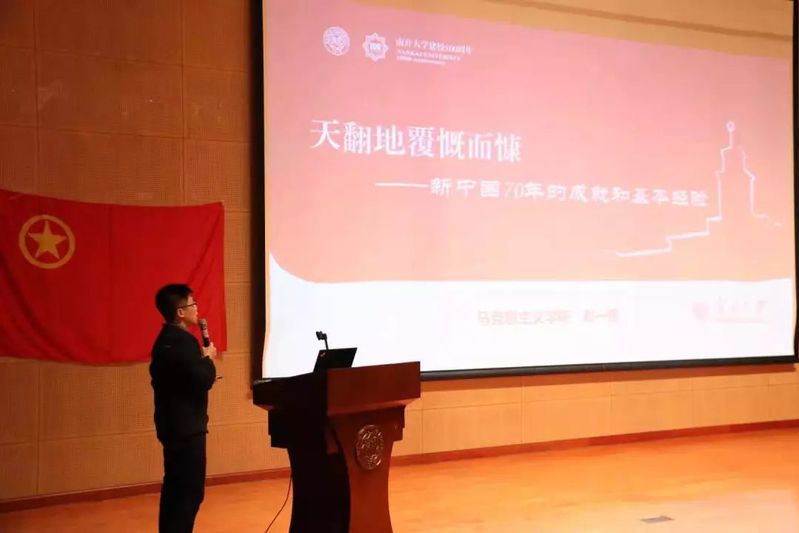 活动伊始,必威BETWAY西汉姆联党委副书记、副院长刘一博给大家带来了“天翻地覆慨而慷——新中国成立70年的成就和基本经验”主题理论团课。刘一博书记带领大家回顾新中国成立后一系列伟大成就,总结新中国发展的基本经验。刘一博书记详细解读了改革开放前三十年那一代人的巨大努力与付出,在国防、科技、民生、外交上取得的伟大成就,强调前三十年艰辛探索对改革开放后在经济取得巨大成就的奠基作用,系统阐释了社会主义的优越性,解答了中国人民选择社会主义的必然性。