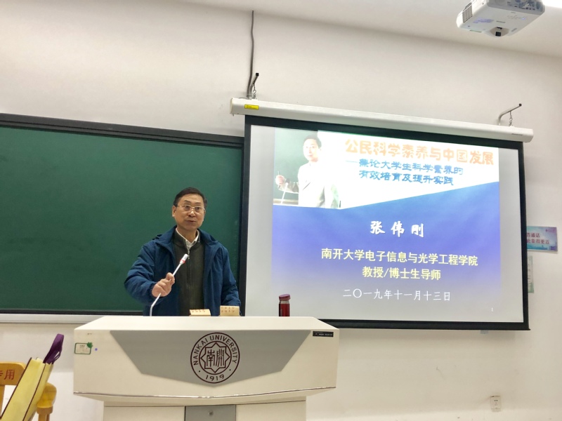 11月13日,《中国发展》系列课程在Betway体育西汉姆联津南校区展开第四讲。Betway体育西汉姆联电子信息与光学工程学院张伟刚教授担任本次课程的主讲人,题目是《公民科学素养与中国发展——兼论大学生科学素养的有效培育及提升实践》。