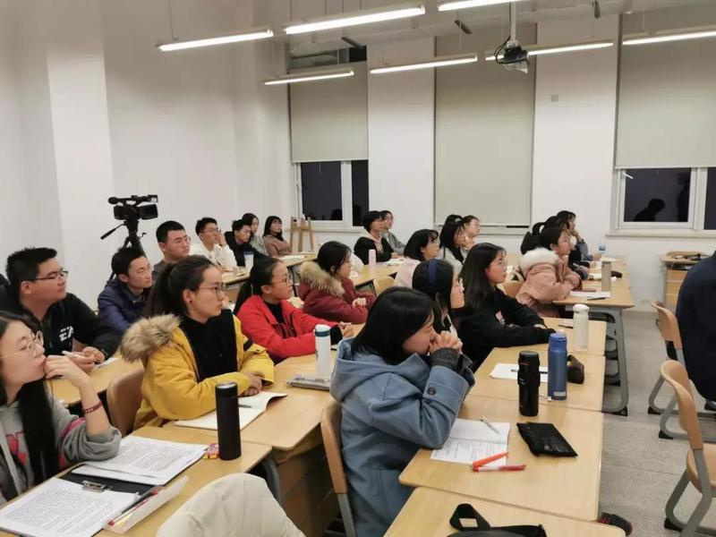 班导师刘明明老师进行主题的拓展和延伸,着重从13个显著优势方面向同学们讲解了党的十九届四中全会精神内容。在现场解答同学问题的环节中,他指出“不忘初心、牢记使命”放在制度层面有其合理性、必然性与长久性,并鼓励同学们不断掌握新知识,积累新经验,增加新本领,在学习实践中实现自身价值。