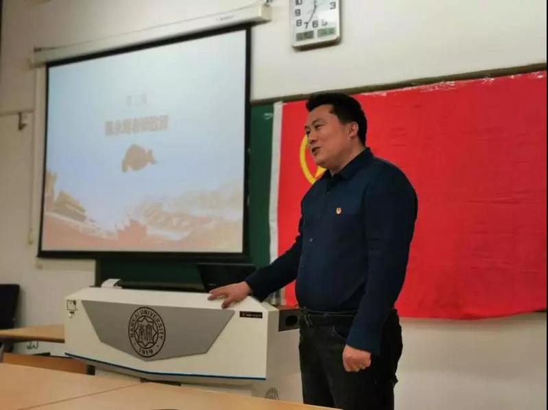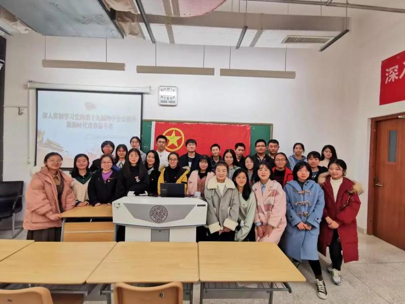 活动伊始,全体成员起立齐唱团歌。随后,陈老师讲到,同学们要增强自己共青团身份的定位和认识,充分发挥好团员青年生力军和后备军的重要作用;结合专业优势,深入学习贯彻党的十九届四中全会精神,进一步了解坚持和完善中国特色社会主义制度、推进国家治理体系和治理能力现代化的重要性及具体内涵;要敢于走出学院走向社会,用宣讲的方式将自己理解的四中全会精神讲给更多的人听,要在学和讲中深化理解和认识,激励自己做新时代的青春奋斗者。