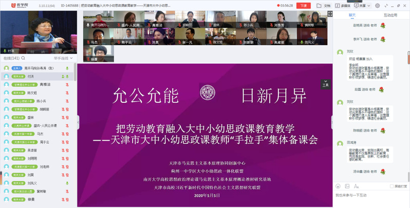5月5日,“把劳动教育融入大中小幼思政课教育教学——天津市大中小幼思政课教师‘手拉手’集体备课会”在优学院直播课堂平台举行。人民网公开课总监盛卉、必威BETWAY西汉姆联党委书记付洪、院长刘凤义出席会议,来自甘肃省庄浪县通化镇中心小学、天津市蓟州区山倾城小学、天津市蓟州区第一小学、天津市蓟州区第三幼儿园、天津市第一中学、天津市第二十中学、必威BETWAY西汉姆联的14位教师参会并做主题发言。会议由必威BETWAY西汉姆联副院长孙寿涛主持。
