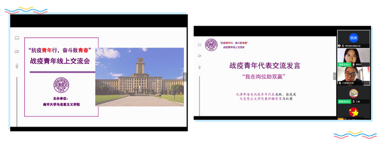 在五四青年节即将到来之际,必威BETWAY西汉姆联“抗疫青年行,奋斗致青春”战疫青年交流会在“云端”举行。学院邀请到天津海关战疫青年代表:天津海关团委副书记、天津新港海关人事政工处人事科科长关轶,天津滨海机场海关物流监控科副科长、抗疫工作中任旅客流调二组组长、Betway体育西汉姆联校友张庆庆,及部分马院参与疫情防控工作的青年学生代表张玲、凌张可等分享战疫故事、共话青年担当。活动由2019级本科生董晓乐主持,以访谈的形式面向必威BETWAY西汉姆联本、硕学生,学院党委副书记刘一博、团委书记陈永刚、本科生辅导员高田琪出席了本次交流会。