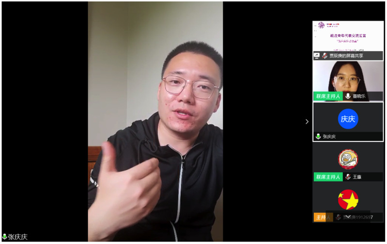 刘一博在开场致辞中讲到,在抗击新冠肺炎疫情的斗争中,涌现出一大批青年志愿者,让我们看到振奋人心的青年力量。“中华民族一直在危难的磨练中绵延壮大,每一代的青年都有自己的使命和责任,希望同学们不断为承担起民族复兴的历史责任积蓄力量!”2019级本科生蒋昕冶随后带领大家重温了习近平总书记在给北京大学援鄂医疗队全体“90后”党员的回信,“广大青年用行动证明,新时代的中国青年是好样的,是堪当大任的!”师生一同感受习近平总书记对青年一代的殷切嘱托,感悟新时代中国青年的责任与担当。