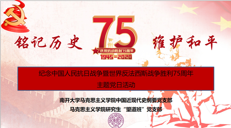 张健教授表示,近来全党全国正在火热地开展“四史”教育。值此全国人民抗战胜利75周年之际,我们坚持南开思政课“师生四同”育人模式,以党支部的形式开展师生同学同研,进一步加强对抗战和抗战精神的学术研究,并探索把学术研究成果向课堂教学转化,真正做到政治性与学理性相统一,“让有信仰的人讲信仰”,为培养更多的爱党爱国爱社会主义的中国特色社会主义合格建设者和可靠接班人而不懈奋斗。
