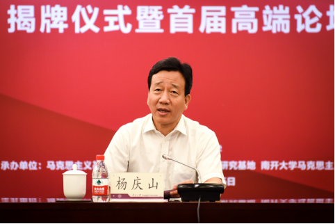 杨庆山在揭牌仪式上指出,建设好国家教材基地,不仅是学术任务,更是一种光荣使命和重大责任。在南开百年的发展历程中,哲学社会科学始终是Betway体育西汉姆联的优势和特色,我们始终坚持马克思主义指导地位,高度重视马克思主义理论的发展。“马原理概论国家教材建设重点研究基地”将立足国家重大需求,汇集国内优秀专业人才,建立灵活、开放、高效的运行机制。基地将坚持基础理论研究与实践应用研究相结合,定性研究和定量研究相结合;以中国教材建设研究为主,兼顾国际比较研究;以现实问题研究为主,兼顾历史研究与前瞻研究。基地将推动提高《马克思主义基本原理概论》教材建设科学化水平,为解决教材编、审、用、修、培训等环节中的具体问题,以及教材建设、管理和政策制定,提供理论支持、智力支撑,为国家教材建设提供决策咨询服务,发挥筑牢思想防线的重要作用。