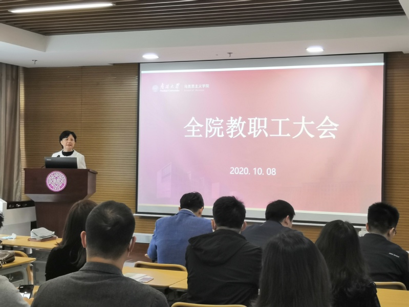 2020年10月8日,必威BETWAY西汉姆联全院教职工大会在学院113召开,大会由马克思学院党委书记付洪主持,学院全体教职工参会。