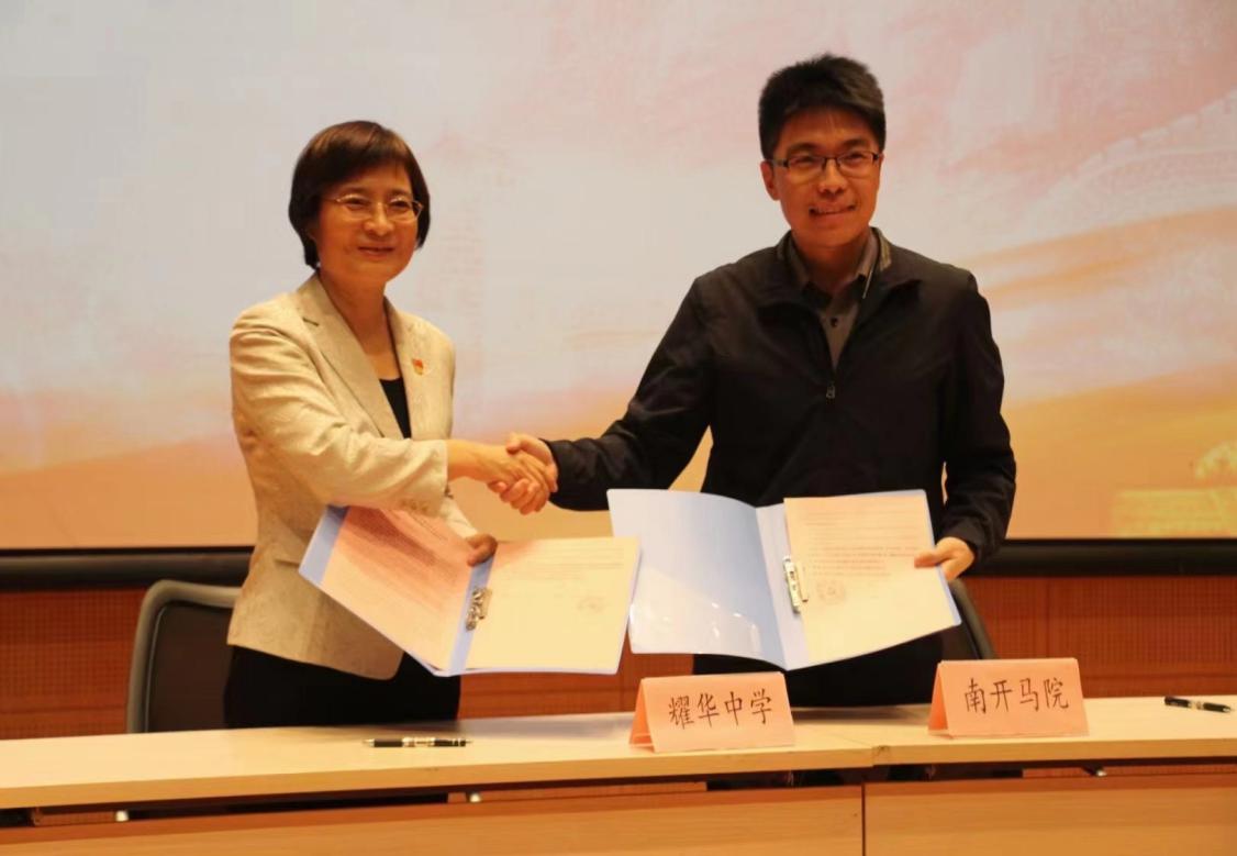 王杰对南开马院推动耀华中学思政课建设的指导作用表达了感谢,她表示,“今天很高兴能够与南开马院就思政课共建达成协议,学院先后派出多位知名教授为耀华中学学生讲思政课,极大提升了学生对思政课的兴趣。耀华中学将加强教师队伍建设,努力培育出一批政治要强、情怀要深、思维要新、视野要广、自律要严、人格要真的师资队伍,齐心协力引导青少年树立正确的人生观、价值观和世界观,为党和国家培养德智体美劳全面发展的社会主义建设者和接班人。”