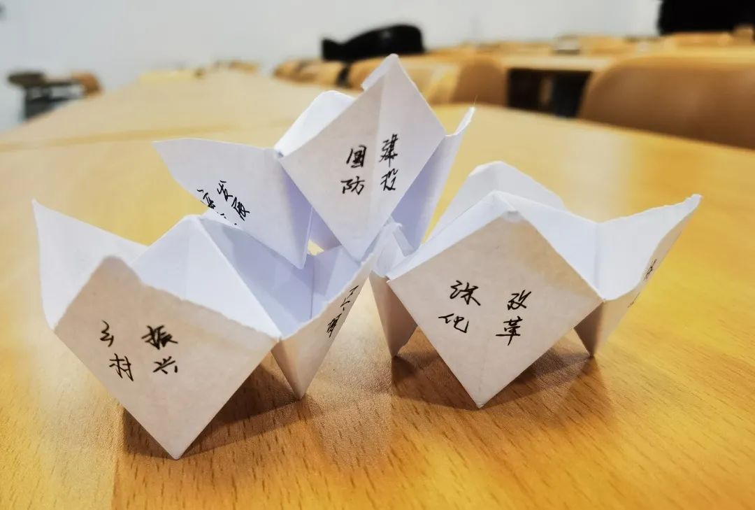 在展示中,各组都对于《建议》的三个板块有了结构性的认识,根据所思所想针对《建议》内容分别总结出了“体系”、“创新”、“市场”、“安全发展”等关键词。在形式上,张慕然、程君玲以生动形象图标来具体阐释七个重点问题,图文并茂的方式让同学们记忆犹新;王世昱、贾辰庚用平面和立体相结合的方式重点讲述了十二个部分的内容,为同学们学习文件提供了全新思路,引发了同学的一致好评。