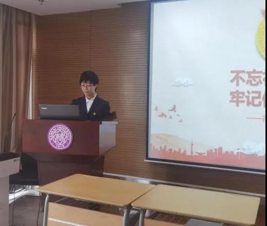 然后,高海洋同学讲述了一些与共青团员相关的历史故事,同时也提到一个学期以来,我们在团校的学习和锤炼中从一个个懵懂的少年不断走向成熟。从学习党史到领悟党的十九届五中全会精神,在一次次的精神的洗礼中,我们坚定理想信念,在学习中升华、内省中完善、自律中养成、实践中锤炼。我们不仅学到了许多红色知识,也在参与中增强了启寤班集体的向心力和凝聚力。