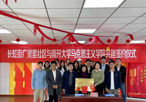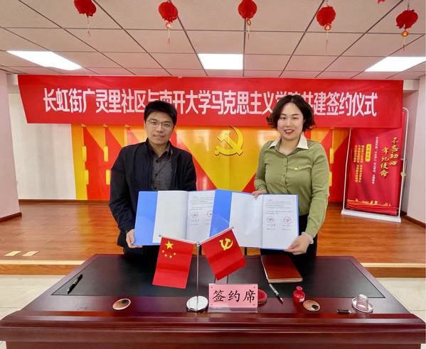 为深入推进“四史”学习教育,着力培养知行合一、公能兼备的学生党员,418日学院与天津长虹街道广灵里社区基层党支部在临渭佳园签订共建协议。天津长虹街道办事处主任李颖,广灵里社区党委书记刘盼、党委副书记董旭东,学院党委副书记副院长刘一博、党委专职组织员殴喜乐出席活动,2020级硕士生新民班支部党员参与活动。