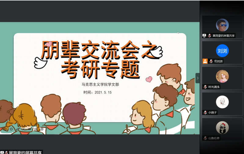 5月15日上午,必威BETWAY西汉姆联考研专题朋辈交流会通过线上会议成功召开。本次交流会邀请到张楠、王卓、钟斌辉、邹傲凡四位优秀的学长学姐,结合自身经历向大家传授宝贵的考研经验与指导建议。