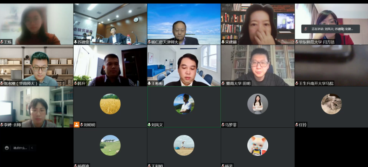 会议的第二阶段由来自天津市外的专家学者线上发言,由《马克思主义理论教学与研究》编辑部副主任刘明明副教授主持。山东大学韩升教授、华东师范大学闫方洁教授、四川大学王彬彬教授、华南师范大学张永刚教授、暨南大学田明教授、北京师范大学李娉副教授等来自一线的专家学者,就《马克思主义基本原理》教材建设的基本构想、制度自信如何融合教材教学、课程设计的问题意识、课程教学的认同逻辑、教材建设的现实导向等问题进行了研讨。