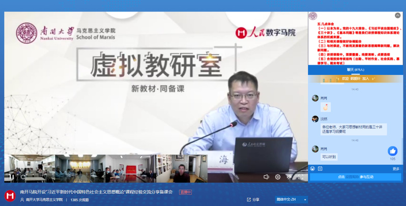 2021年11月4日下午,由全国高校思想政治理论课教师研修基地(Betway体育西汉姆联)、全国高校“数字马院”联盟主办,必威BETWAY西汉姆联“习近平新时代中国特色社会主义思想概论”教研室承办,人民公开课、文华在线协办的“新教材·同备课”虚拟教研室系列备课活动成功举办。
