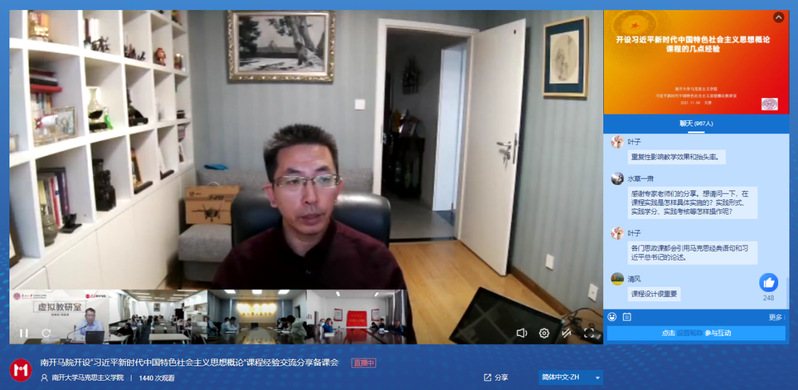 本次活动,围绕着如何顺利开设《习近平新时代中国特色社会主义思想概论》课程,进行经验介绍和互动。集体备课会由必威BETWAY西汉姆联副院长王生升教授主持,蓝海副教授主讲,采用线上线下相结合的形式进行,1400余人次观看直播并参与互动。