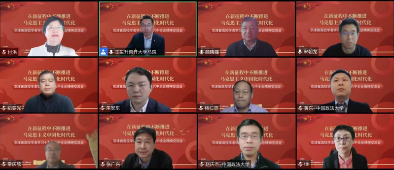 11月20日,必威BETWAY西汉姆联与北京高校中国特色社会主义理论研究协同创新中心(中国政法大学)联合举办“京津冀高校学者学习党的十九届六中全会精神交流会”,京津冀高校马克思主义学者集聚云端,围绕“在新征程中不断推进马克思主义中国化时代化”这一主题,对《中共中央关于党的百年奋斗重大成就和历史经验的决议》(以下简称《决议》)精神展开交流研讨。