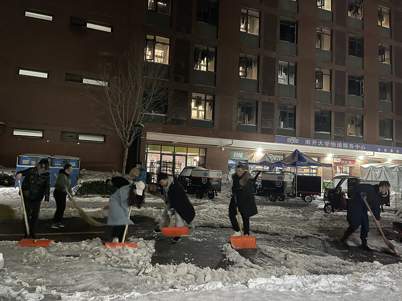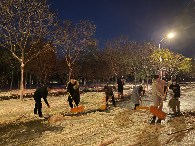 恰逢立冬,大雪骤至。初雪为大家带来惊喜与美景的同时,也给全校师生的出行带来了极大不便。为尽快扫除积雪、畅通道路、消除隐患,切实发挥党支部战斗堡垒作用和党员先锋模范作用,11月7日晚,2021级硕士生望志班党支部组织党员、团员于一食堂东侧、文科组团宿舍楼周边及必威BETWAY西汉姆联楼前的主干道开展积雪清扫志愿服务活动。