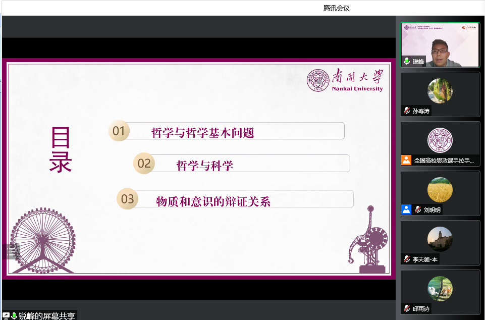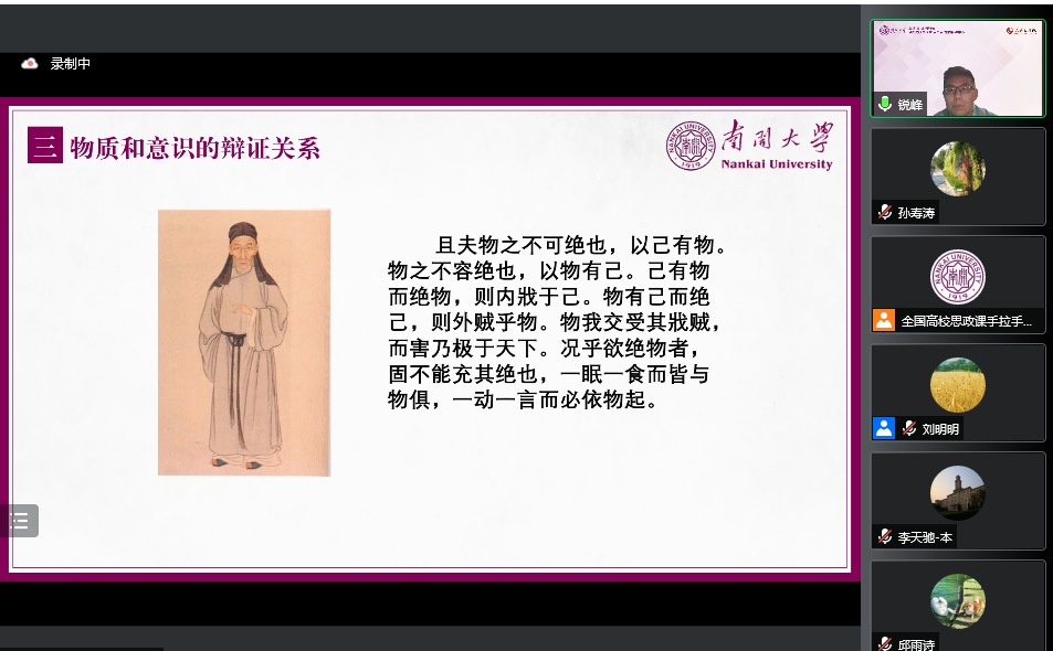 活动最后,主持人刘明明老师作总结发言。刘老师指出,孟老师的教学展示将理论与实际结合起来,把历史和现实贯通起来,以透彻的学理分析回应学生,以彻底的思想理论说服学生,以真理的强大力量引导学生,系统阐述了如何讲好“物质统一性原理”这一章节。参会教师们纷纷表示,本次集体备课会,对于推进高校思政课高质量发展,全面提升马原理课程教学水平,深化对马原理课程重点难点问题的理解,具有重要意义。