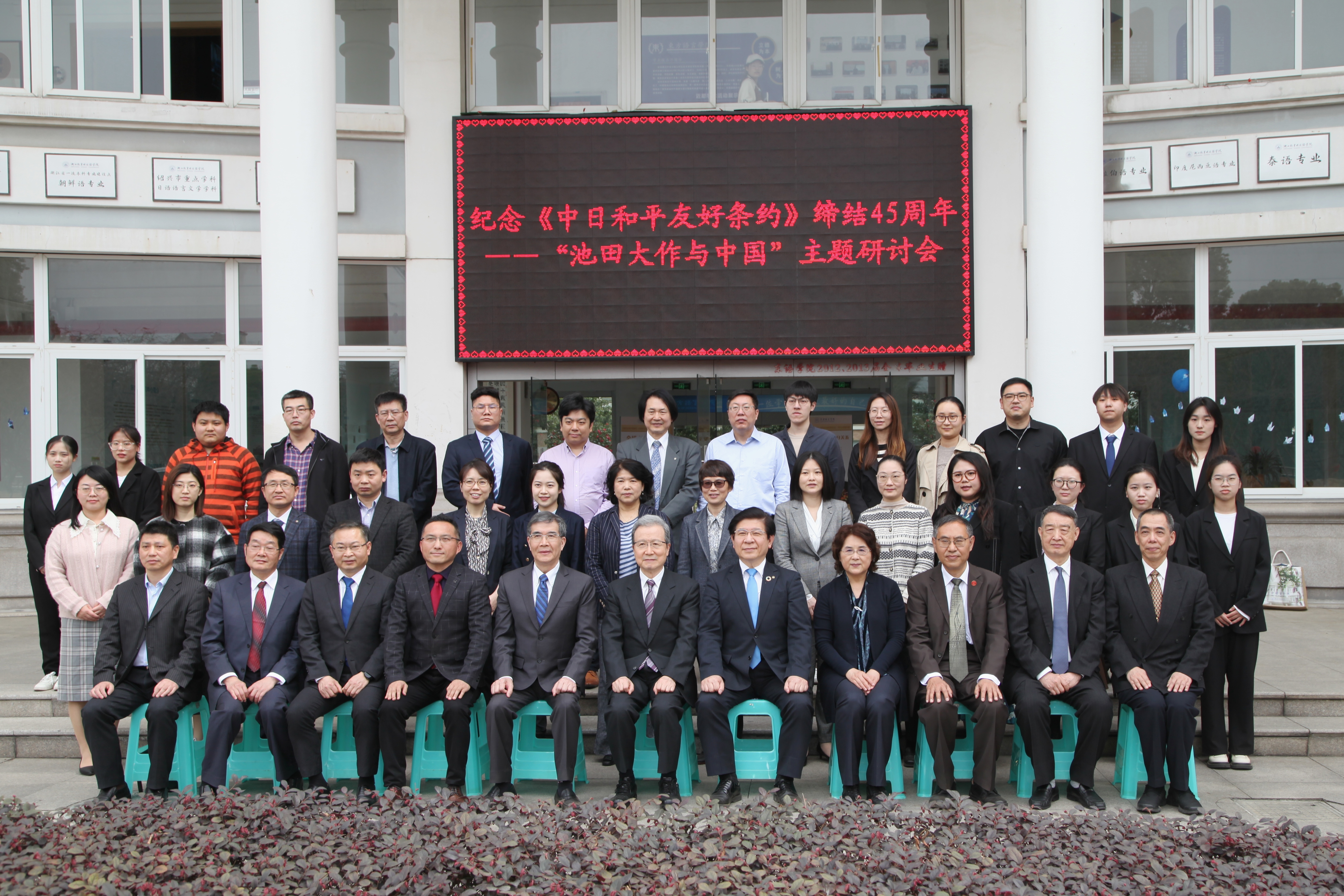 此次研讨会分为线下和线上两部分。中日友好协会常务副会长程永华先生,日本创价大学校长铃木将史先生,浙江越秀外国语学院叶兴国校长,中国社会科学院、复旦大学、广东省社会科学院、江西省社会科学院等多所国内高校和研究机构的专家学者,以及学生共约100人参加了本次线下会议。除此之外,日本创价大学田代康则理事长、秋谷芳英副理事长,高桥强教授,董芳胜副教授,以及校友等60多人同步参加线上会议。