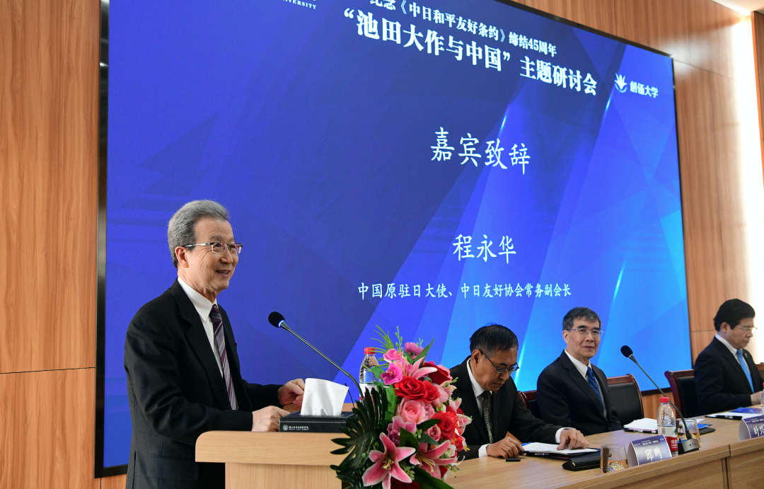 在会议开幕式中,中日友好协会程永华常务副会长首先发表致辞。程副会长表示,“今年是中日和平友好条约缔结45周年。双方应以此为契机,深化各领域交流合作,推动中日关系沿着正确轨道改善发展。”接下来,日本创价大学校长铃木将史先生代读了池田大作先生的贺信。池田先生在信中表示,希望本次会议成为下一个中日邦交正常化50年的“智慧之根”、“友谊之源”。铃木校长也承诺,为了两国的友好发展,将继续推进教育领域的学习与交流。