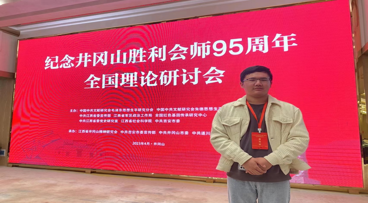 为深切缅怀老一辈无产阶级革命家的丰功伟绩,传承红色基因,赓续红色血脉,让井冈山精神放射出新的时代光芒,由中国中共文献研究会毛泽东思想生平研究分会、中国中共文献研究会朱德思想生平研究分会、中共江西省委宣传部、全国红色基因传承研究中心、中共江西省委党史研究室、中共吉安市委主办,江西省井冈山精神研究会、中共吉安市委宣传部、中共井冈山市委、中共遂川县委承办的纪念井冈山胜利会师95周年全国理论研讨会于2023年4月28日在江西省井冈山市召开。必威BETWAY西汉姆联硕士生庞诏龙作为会议优秀论文代表受邀参会并参与分组研讨。
