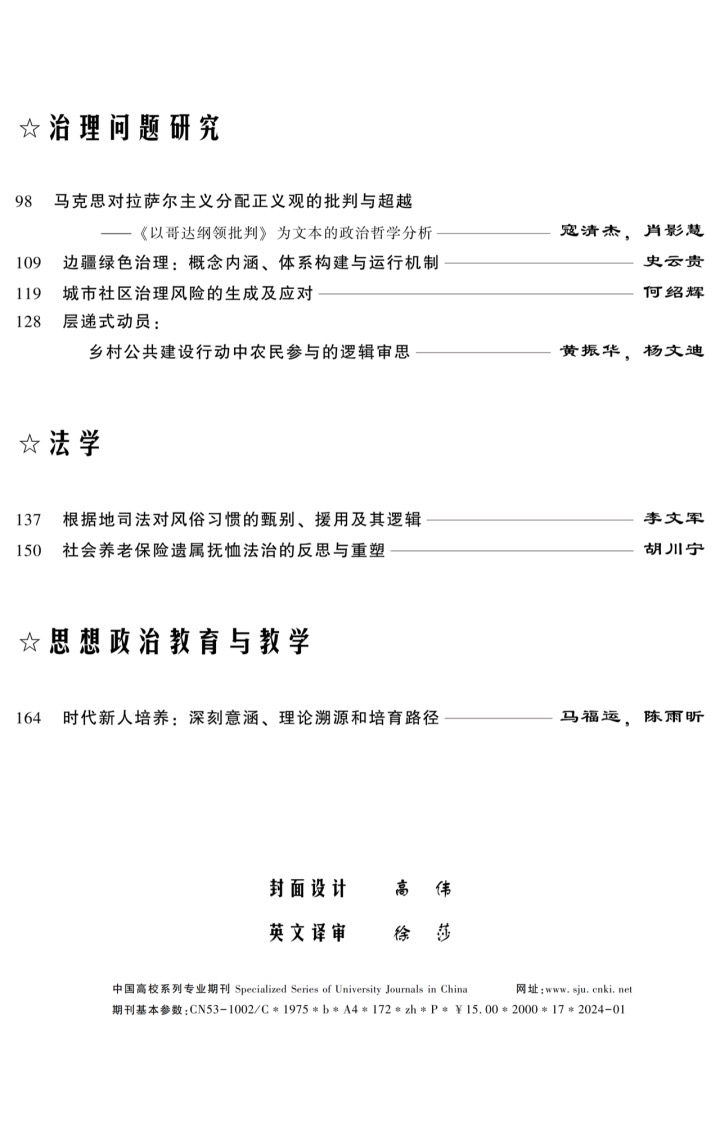 我院寇清杰教授在《思想战线》发表文章《马克思对拉萨尔主义分配正义观的批判与超越——以<哥达纲领批判>为文本的政治哲学分析》。文章认为,马克思在《哥达纲领批判》中通过批判拉萨尔主义的分配正义观,阐明了自己基于历史主义原则的正义观,为人的自由个性的发挥和自我价值的实现指明方向、开辟道路。针对拉萨尔主义将分配正义作为社会主义革命目标的机会主义错误思想,马克思深刻批判了其以劳动所有权为理论基点、以平等的权利为原则从而实现社会公平分配目标的主张。马克思的正义观以生产方式决定分配方式为理论出发点,阐明了按劳分配和按需分配分别是正义在共产主义第一阶段和高级阶段的历史实现形式。在马克思对拉萨尔主义分配正义观的批判性分析中,可归纳出权利原则、贡献原则和需要原则三种分配原则,体现了正义原则在不同阶段的历史展开和扬弃发展的过程。从政治哲学的视角深入探讨马克思对拉萨尔主义分配正义观的批判及其理论超越,既是深刻理解和把握马克思正义观本真要义的必然要求,同时也有利于克服分析马克思主义重构马克思正义观的方法论缺陷与理论局限,消除对马克思正义观辩证意蕴的负面影响。
