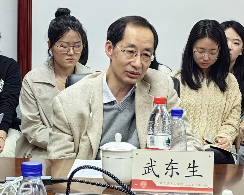 钟启东研究员以马克思主义思想政治教育的基本理念为主题展开探讨。他首先分享了个人形成专业兴趣的历程,尤其谈到了由《<黑格尔法哲学批判>导言》萌发了对马克思主义的兴趣。之后钟老师阐述了他的学术研究思路,一方面是分析经典文本中的思想政治教育理念,运用唯物史观讲述思想的生成逻辑;另一方面是选取“意识形态”这一思想政治教育的核心范畴,展开马克思主义意识形态理论探究。