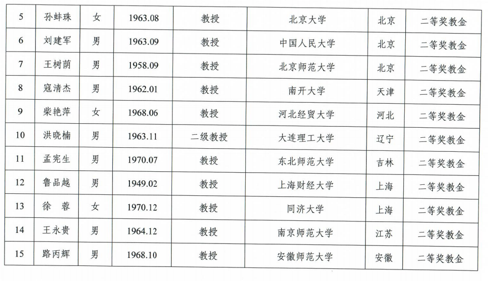 高等学校优秀思政课教师奖教金获奖名单