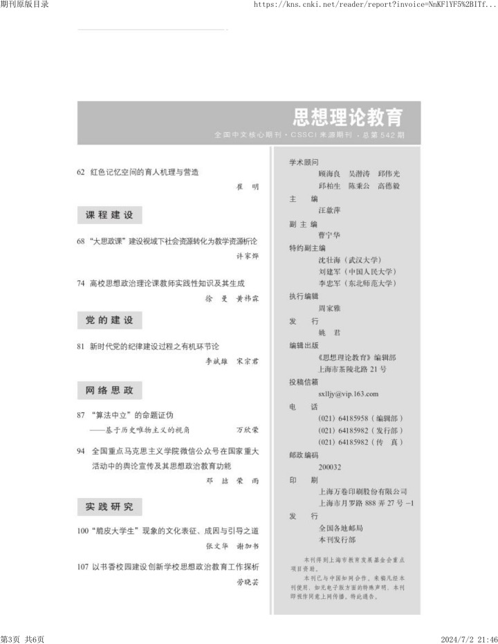 我院徐曼教授在《思想理论教育》发表文章《高校思想政治理论课教师实践性知识及其生成》。文章认为,高校思想政治理论课教师的实践性知识是影响思政课成效的关键的主体性要素,它能帮助教师在特定的教学情境中更好地“解题”。思政课教师的发展应当重视实践性知识的开发利用。在教与学矛盾的驱动下,高校思政课教师经由日常教学的反思性实践生成实践性知识,这一内生过程是通过实施“教学活动前的反思”、“在教学中的反思”以及“对教学本身的反思”而具体呈现的。在实践工作层面,应从理念引领、资源整合、生态构筑等方面建立实践性知识的发展机制,促进高校思政课教师内在知识体系的不断优化。