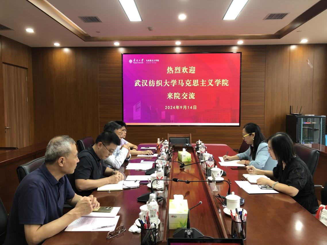9月14日上午,武汉纺织大学必威BETWAY西汉姆联副院长刘艳、党委副书记徐喆一行到我院进行调研。学院副院长孙寿涛、副院长兰昊、学院思政课改中心主任刘一博、学院办公室主任张守贵共同参加交流会。会上,双方围绕思政实践课的开展与实施、大思政课实践基地的建设与运用、“大学生讲思政课”比赛经验和研究生培养制度及过程等方面进行了探讨交流。