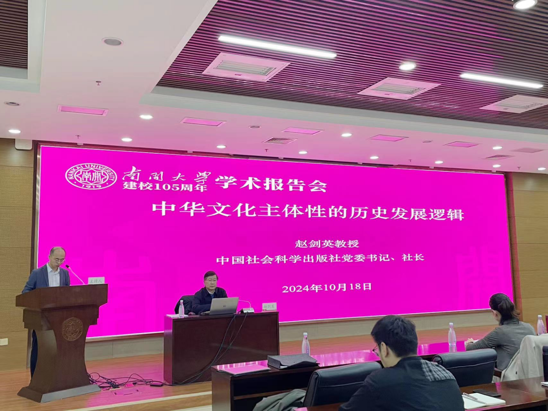 赵剑英教授以“中华文化主体性的历史发展逻辑”为题,从中华文化主体性的历史形态、近代中华文化主体性遭遇的危机与重构、在探索和发展中不断增强中华文化主体性和习近平新时代中国特色社会主义思想巩固了中华文化主体性四个方面入手进行了深入剖析。