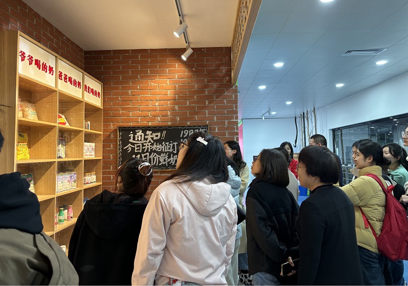 师生一行还参观了海河乳品智慧工厂文创走廊。在讲解员的带领下,大家依次参观了“走进海河”“绿色奶源”“牧场畅游”“智能工厂”“赋能品牌”“牛奶世界”“巴氏牛奶”“创新中心”“许愿未来”九大展区,近距离观看鲜奶流水线,了解自动化生产设备和无菌生产过程,沉浸式感受科技的力量。师生还一同品尝了新款牛奶和酸奶,体验“天津记忆”的味道。
