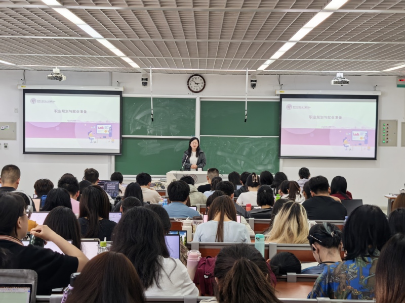 胡颖欣老师深入分析了当前我国经济发展的总体态势、面临的机遇与挑战以及未来的重点任务。她从宏观经济数据入手,详细解读了中国经济高质量发展的亮点与潜力,分析了党中央集中统一领导和社会主义市场经济体制独有的制度优势在经济高质量发展中的根本作用,并结合国际经济形势,探讨了中国经济在全球经济格局中的地位与影响力,为同学们呈现了一个全面、立体的经济画卷。代龙飞老师则紧扣国家稳就业保民生战略部署,针对当前毕业生就业市场的现状,为同学们提供了实用的职业发展指导。她系统梳理了教育部与学校的求职优惠政策,结合金九银十春招秋招等关键节点,为学生提供了国家战略产业需求-区域重点岗位供给-个体职业能力适配的三维指导体系。其指导突出政-校-企协同机制建设,推动实现学生个人职业规划与京津冀协同发展新时代东北振兴等国家区域重大战略的深度嵌合。